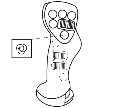 Handgreep die door de machinist wordt beetgepakt om de bewegingen van de graafmachine te verrichten en de besturing van het draaikantelstuk, plus een extra werktuig.
