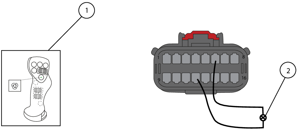 Het waarschuwingssignaal moet klinken zolang een van de solenoïdes van de werktuigvergrendeling op de snelwissel: 1 of 2 van stroom worden voorzien.
