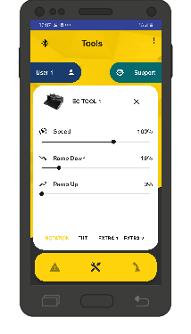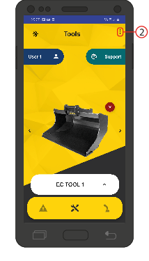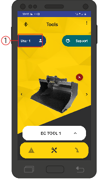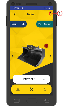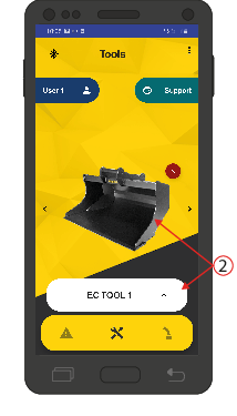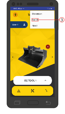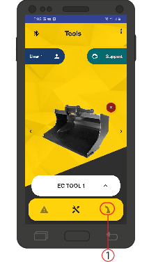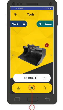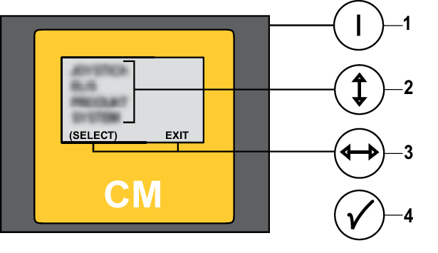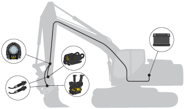 Onderdeel voor bediening van het draaikantelstuk en de functies ervan. In sommige gevallen wordt het besturingssysteem ook gebruikt voor bepaalde functies van de graafmachine.
