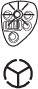 Sticker met symbool of logo voor informatie of waarschuwing.