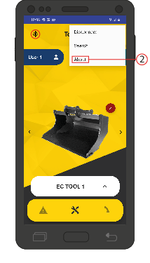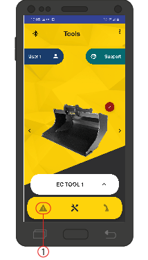 Het waarschuwingssignaal moet klinken zolang een van de solenoïdes van de werktuigvergrendeling op de snelwissel: 1 of 2 van stroom worden voorzien.