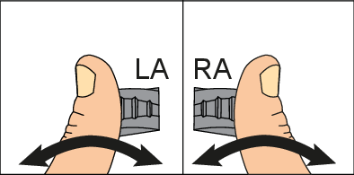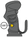 Houd de knop van de MIG2 handgreep gedurende 3 seconden ingedrukt (totdat een aanhoudende geluidssignaal overgaat in korte intermitterende geluidssignalen).