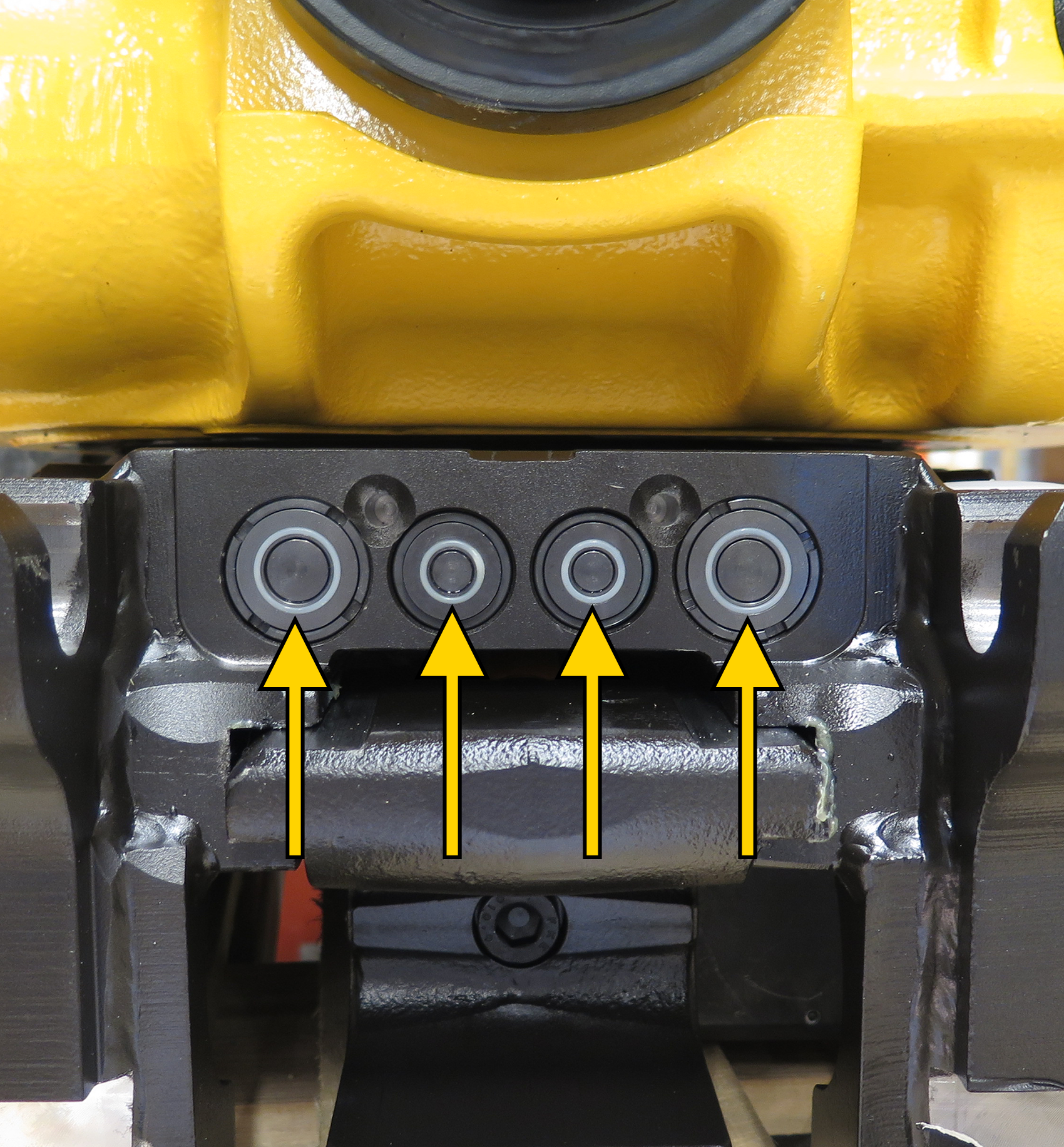 De cilinders op de graafarm van de graafmachine moeten zijn uitgerust met houdkleppen om te voorkomen dat de last in het geval van een slangbreuk naar beneden valt. Risico op persoonlijk letsel en beschadiging van eigendom.