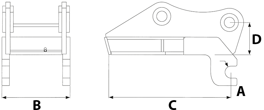 Werktuigbevestiging die direct op de lepelsteel van de graafmachine wordt gemonteerd.