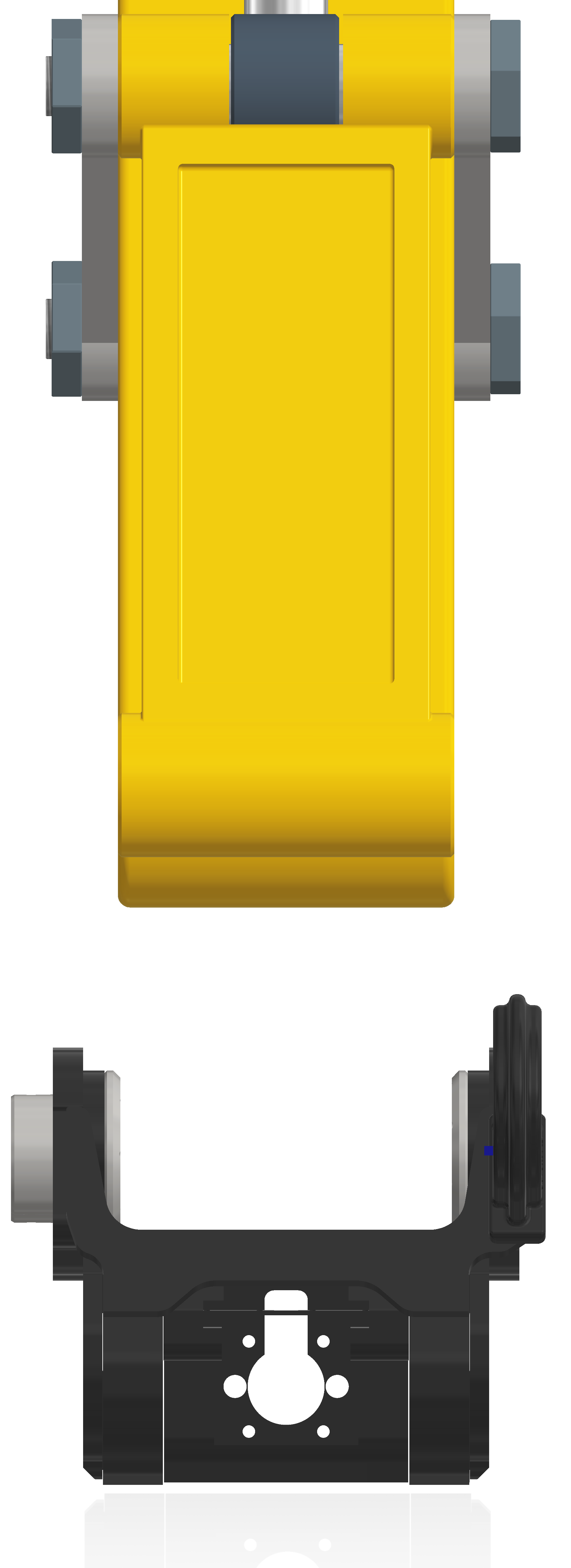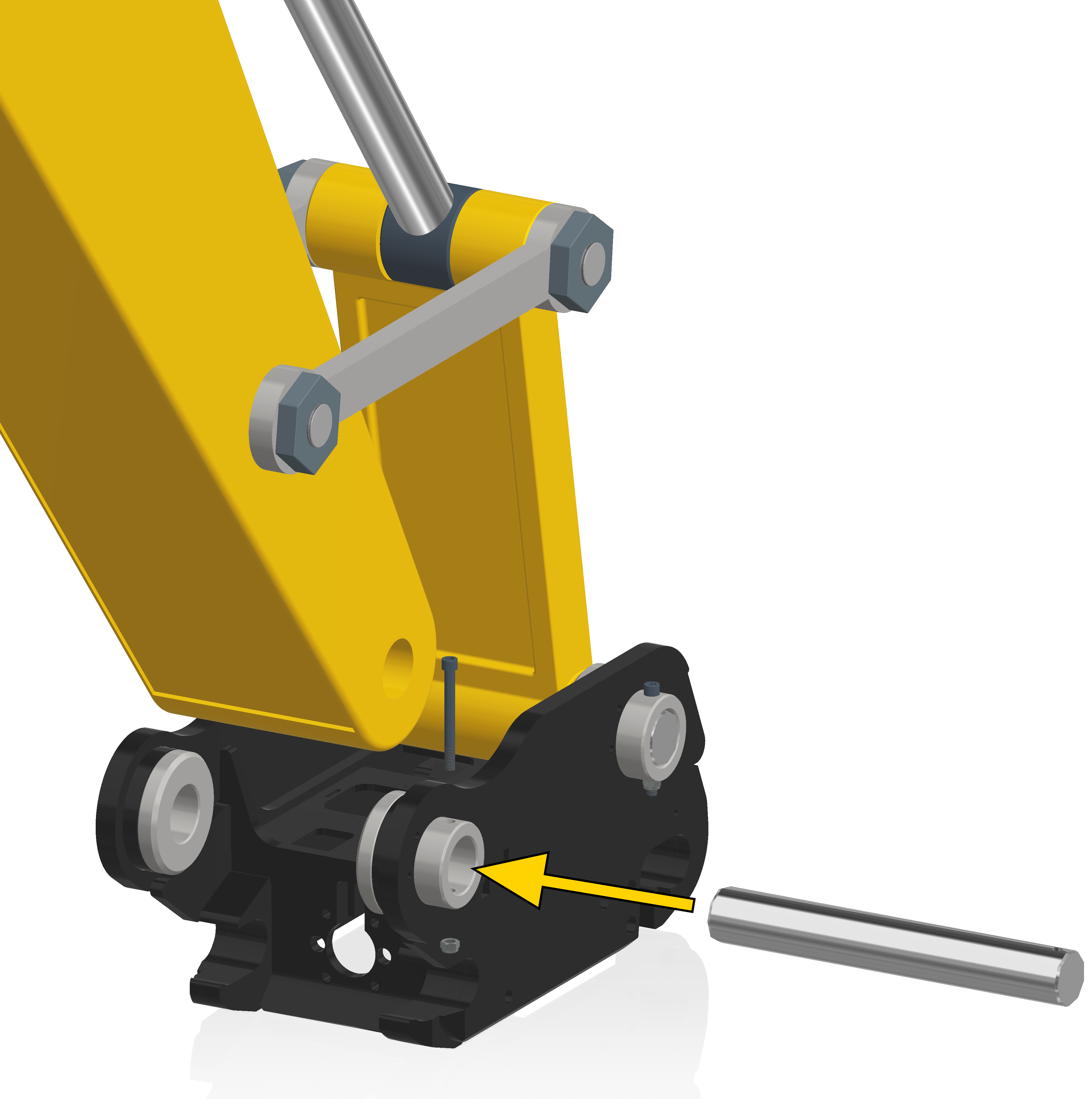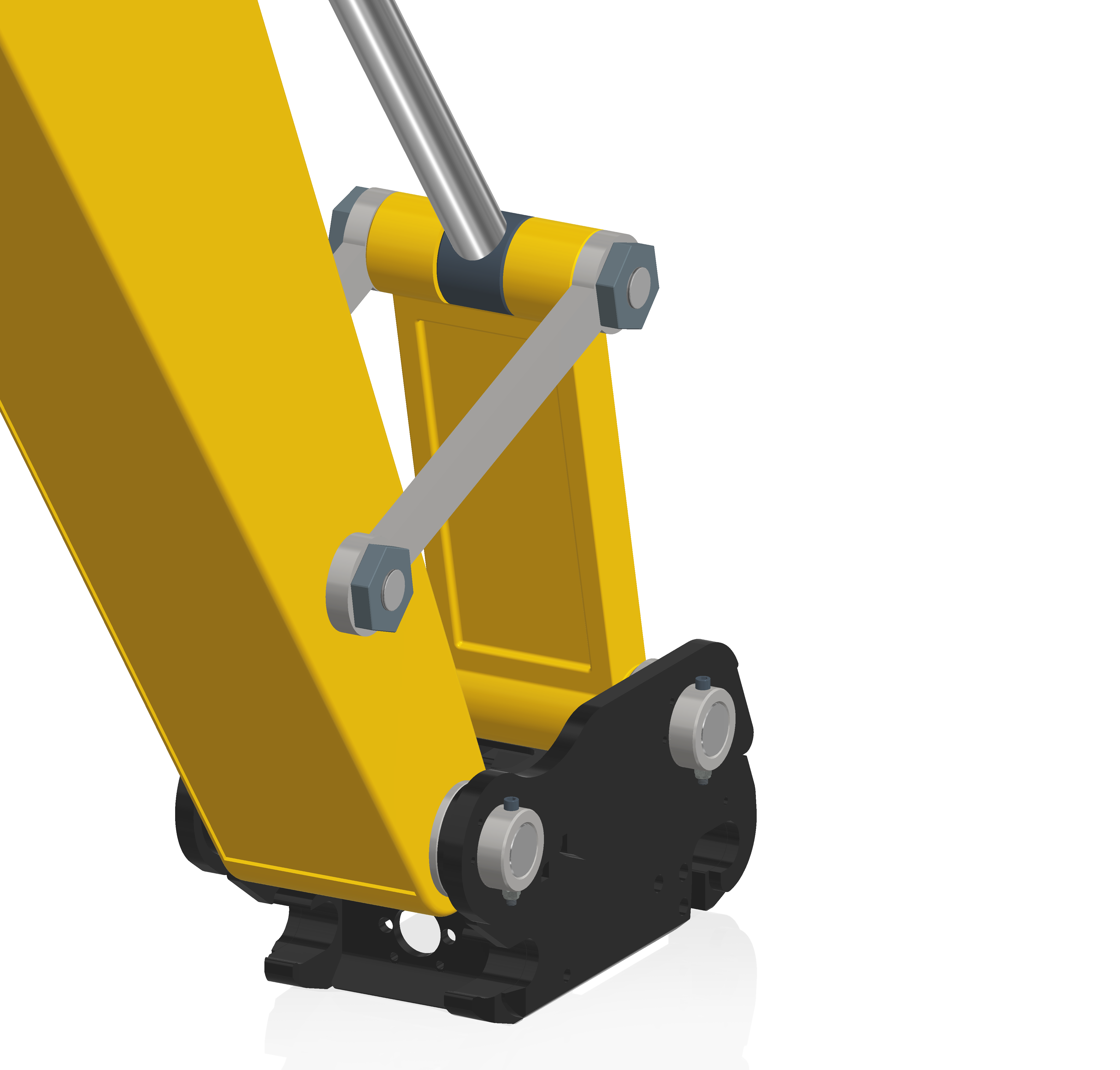Verbinding tussen opbreekcilinder en machinebevestiging, alternatief direct gemonteerd draaikantelstuk.
