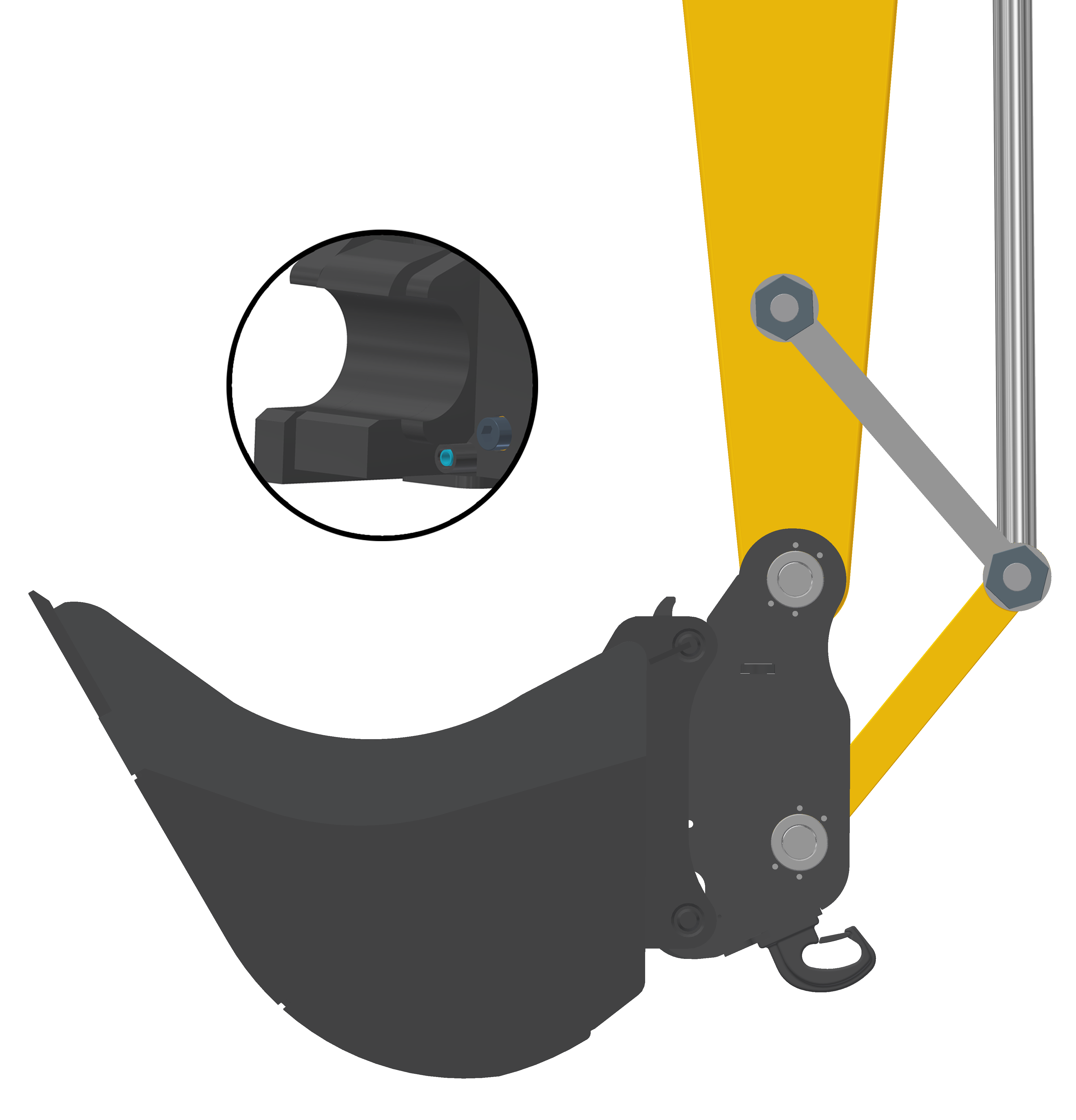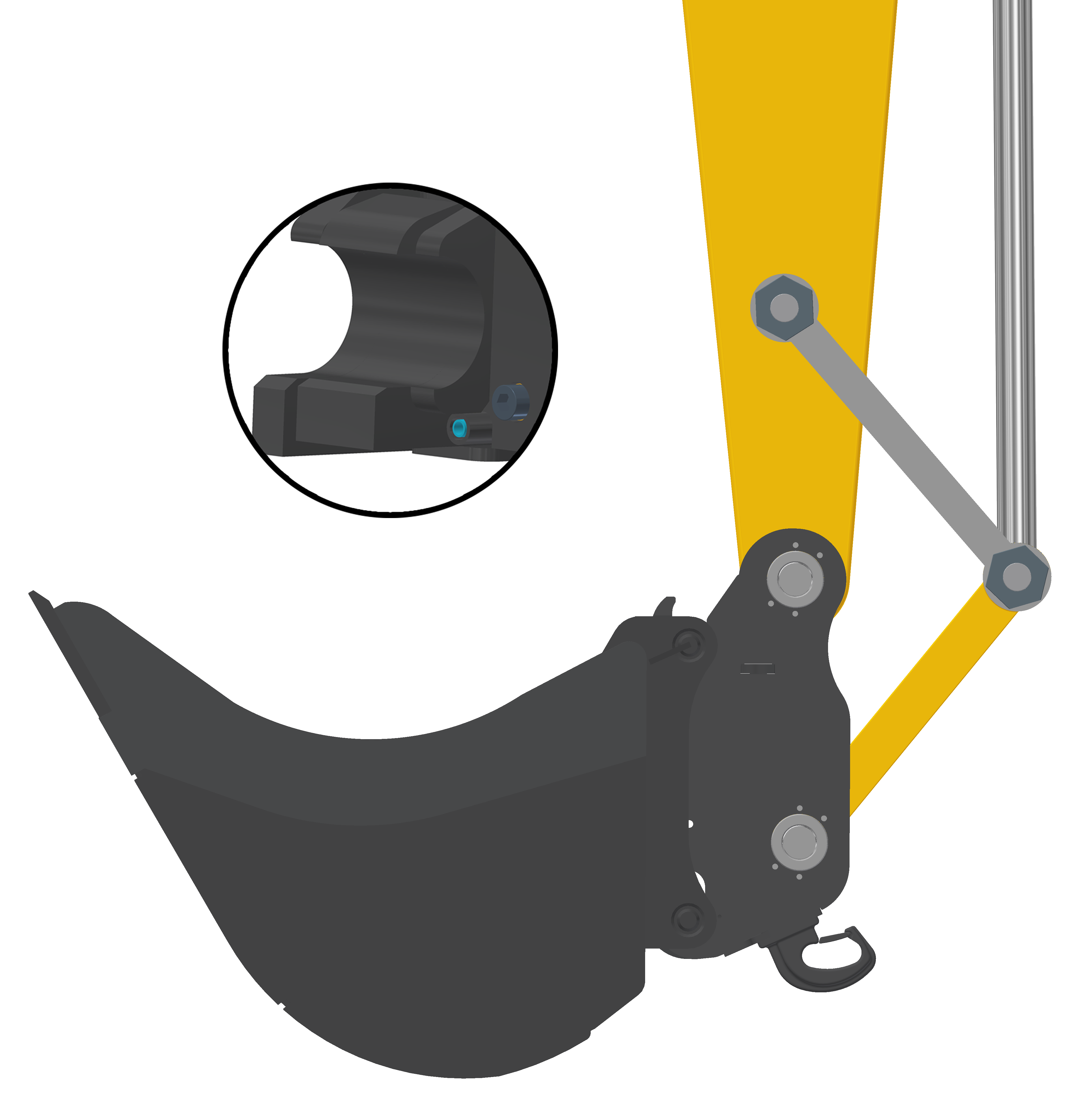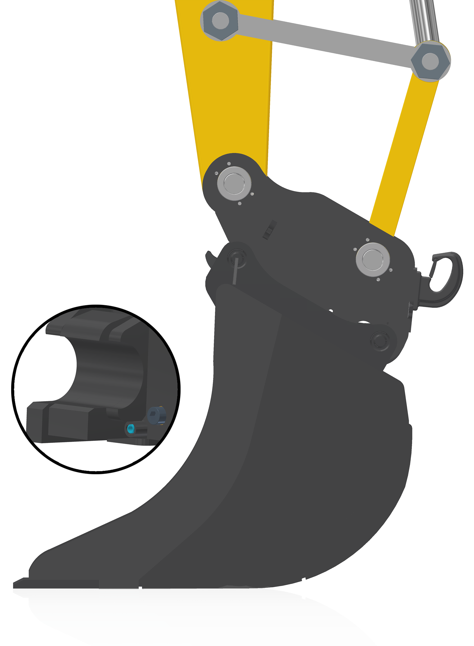 Werktuigbevestiging die direct op de lepelsteel van de graafmachine wordt gemonteerd.