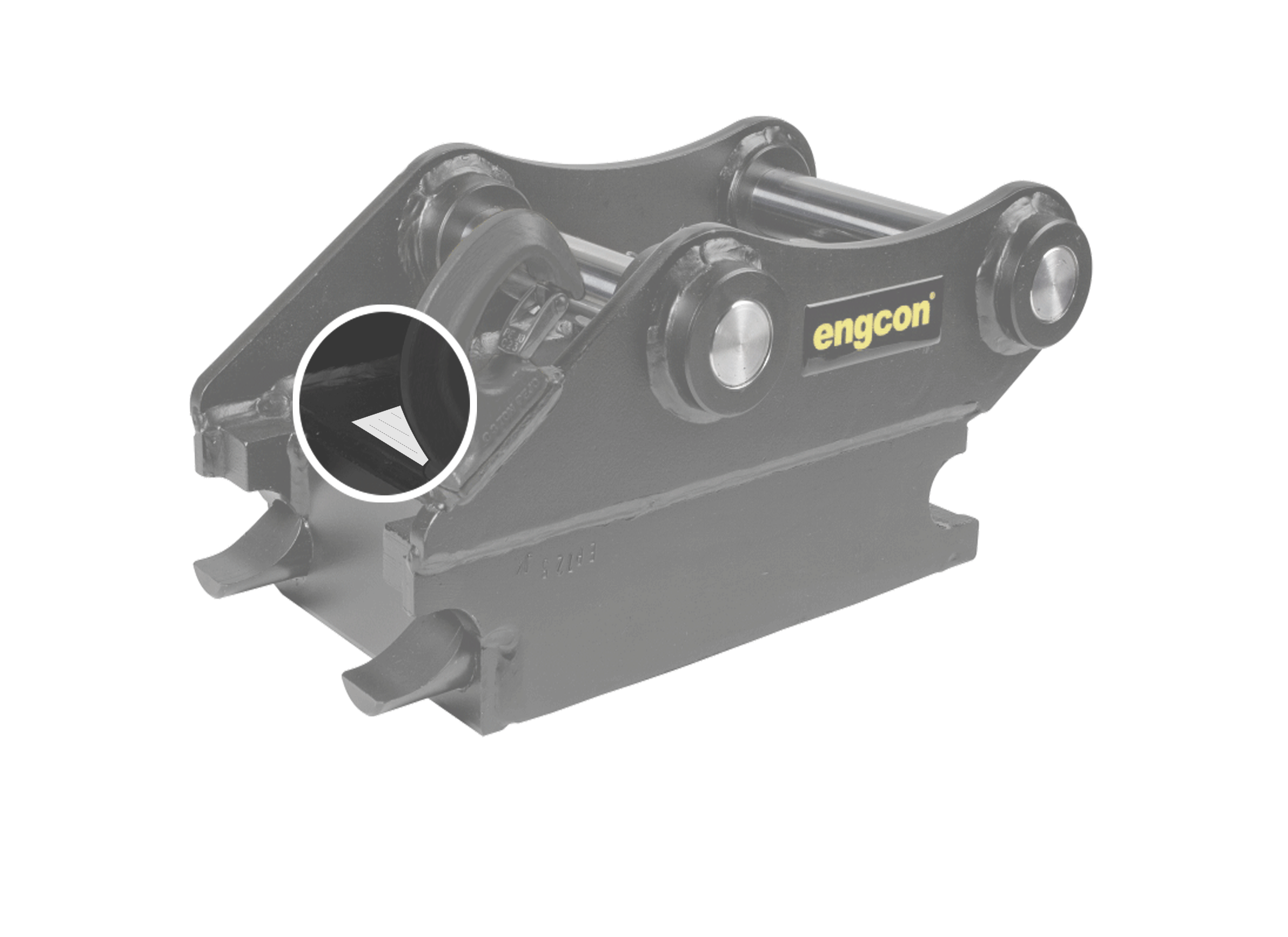 De machinebevestiging van engcon wordt gemonteerd op de lepelsteel van de graafmachine. De machinebevestiging zorgt voor een grotere efficiëntie bij aan- en loskoppelen van werktuigen.