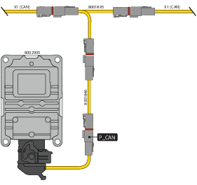 Om extrafunktionen installeras i kombination med bandstyrninging så får ej P ledningen anslutas till bandstyrningsblocket utan måste anslutas enligt illustrationen nedan