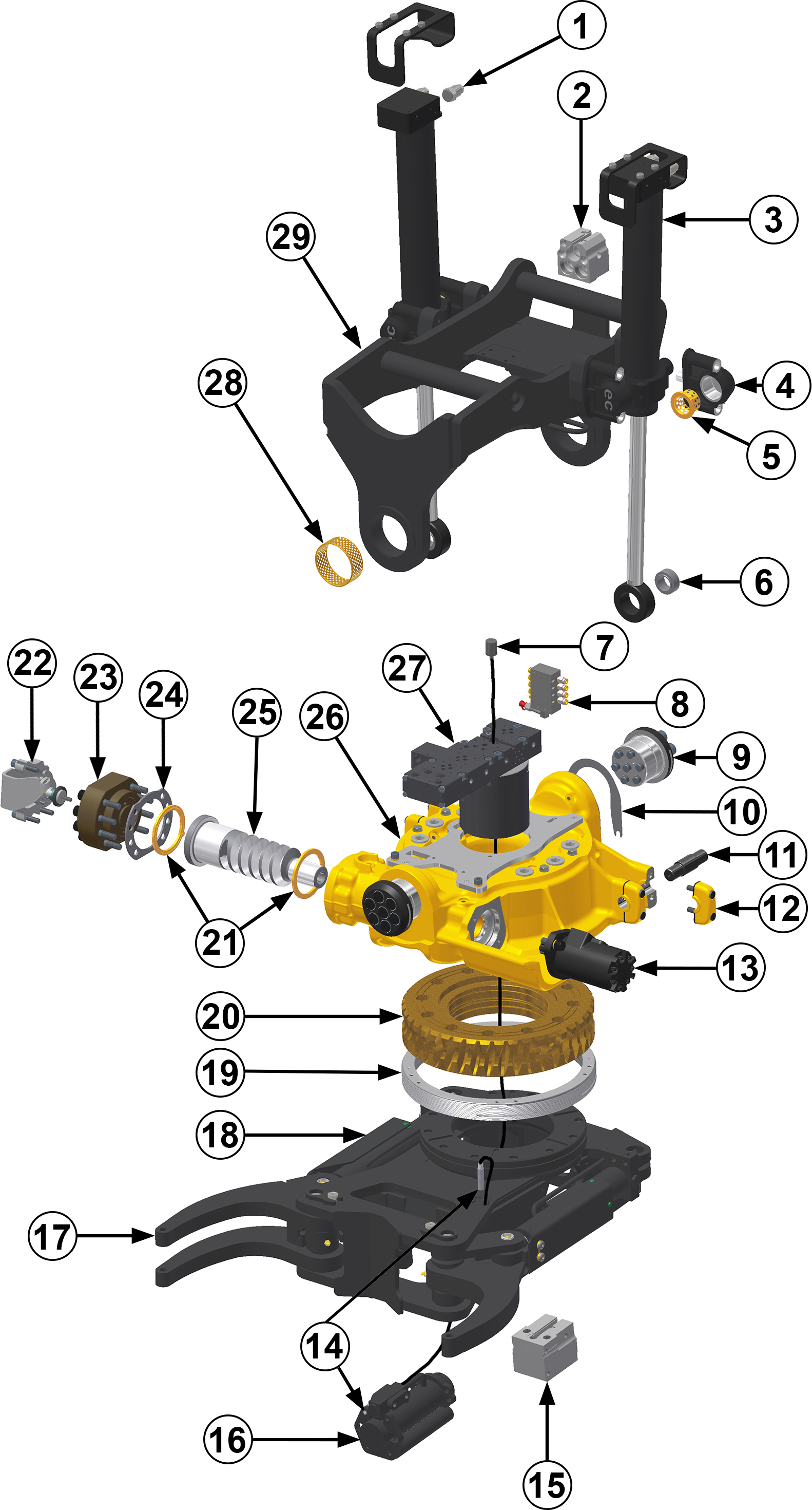 Zit in bovenstuk van hydraulische werktuigen en/of het draaikantelstuk.