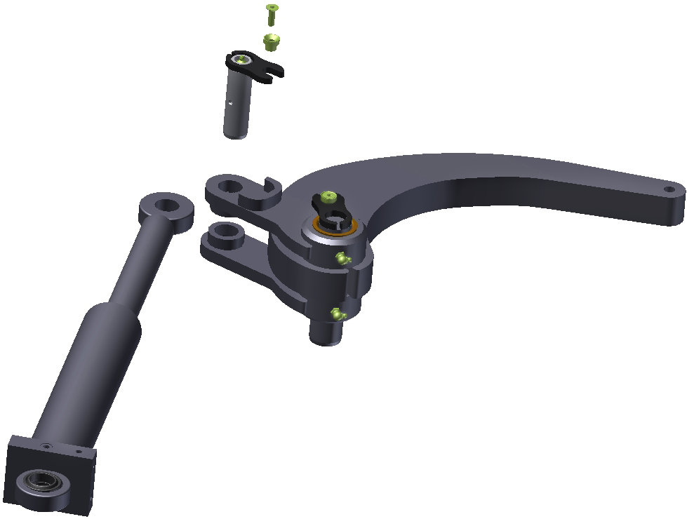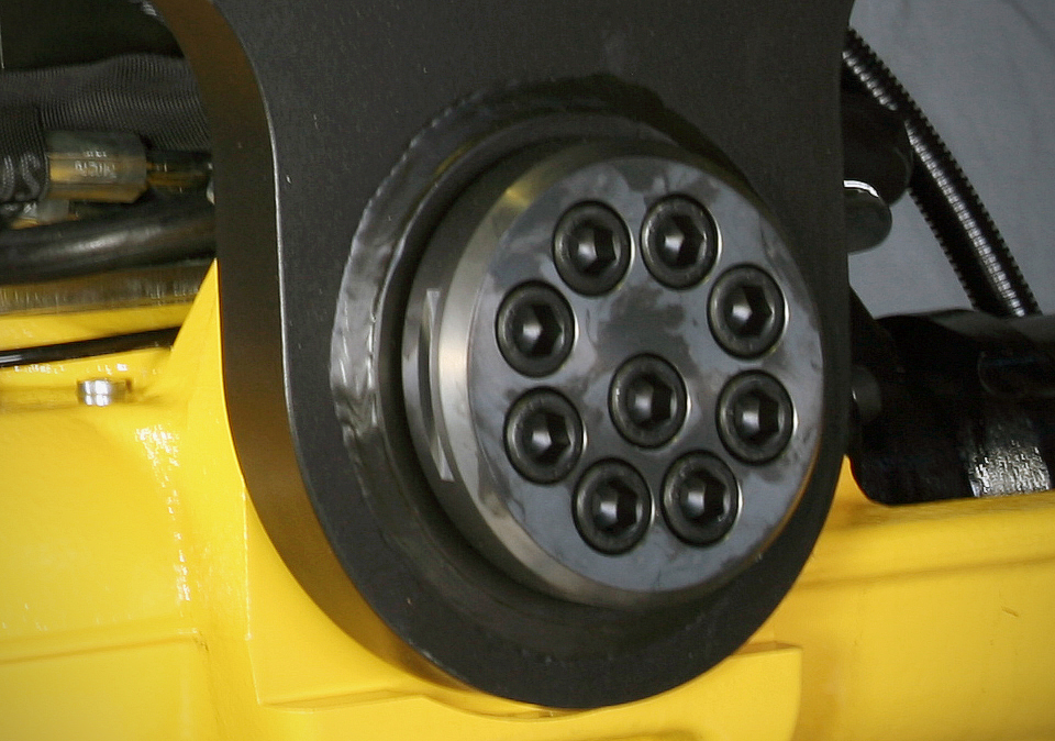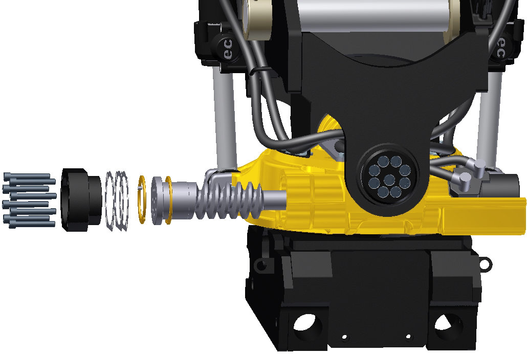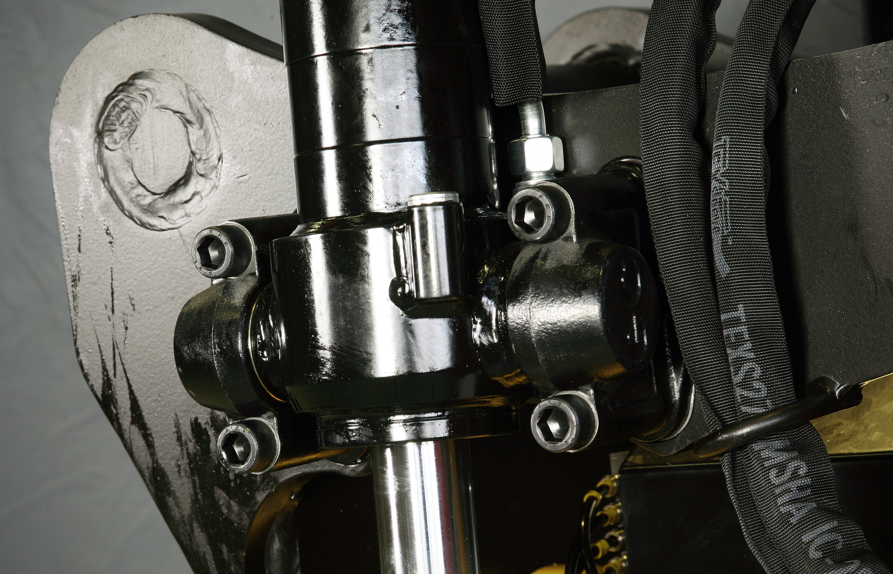 Verbinding tussen opbreekcilinder en machinebevestiging, alternatief direct gemonteerd draaikantelstuk.