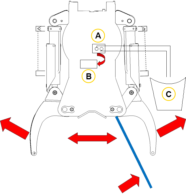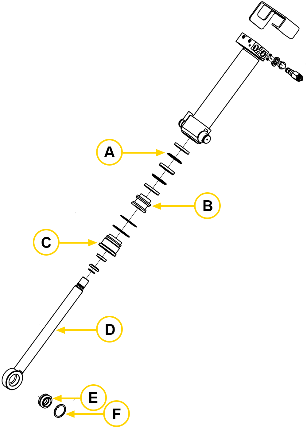 Als er toch beweging is, vervang dan de lasthoudklep op de cilinder die uitgeschoven kan worden (de kant waar het kantelbovenstuk van het rotatorframe af beweegt).
