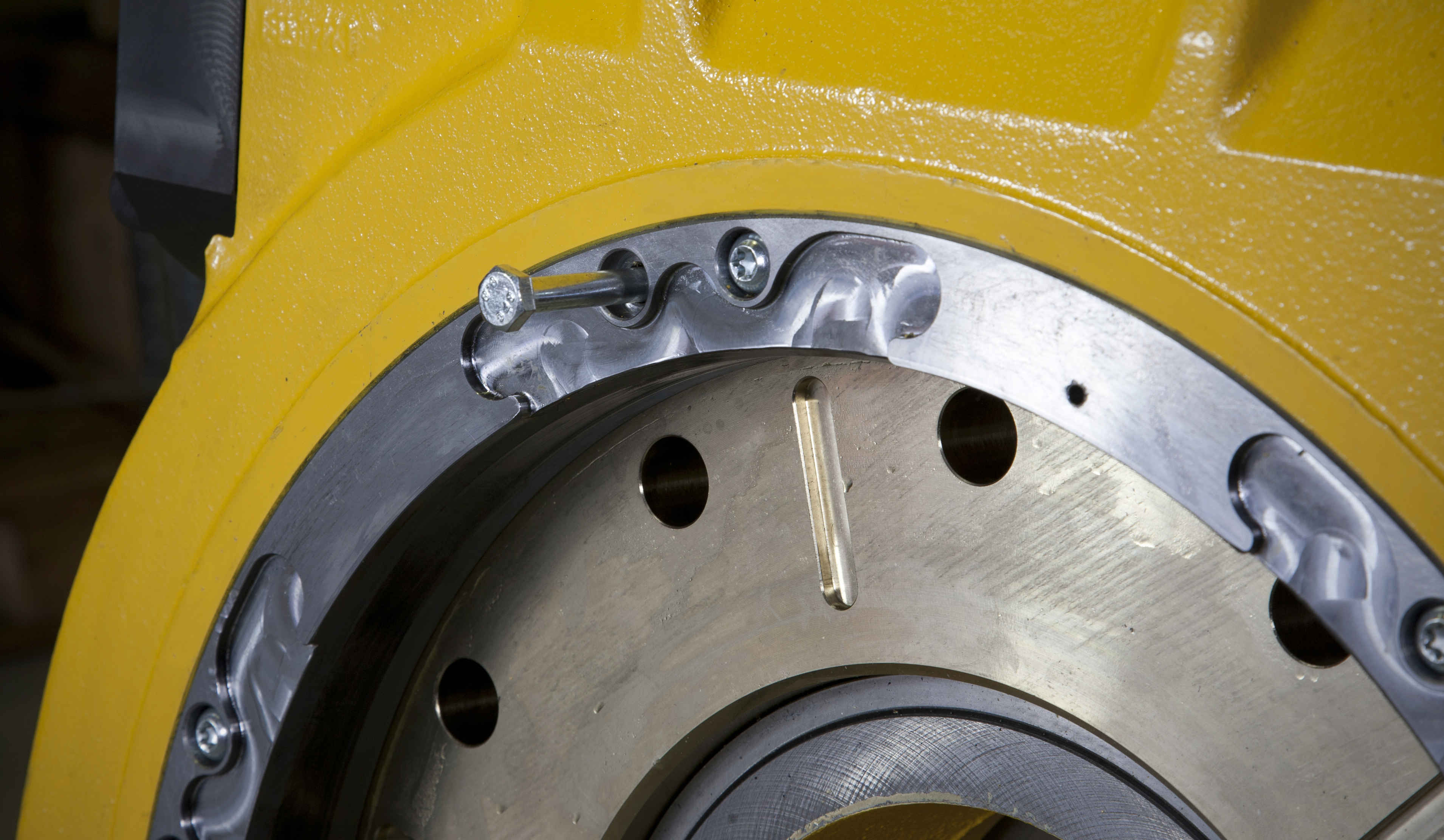 3. Plaats vulplaten aan de binnenkant van de kantelaxiaalring op de kantelas die naar de cabine wijst.