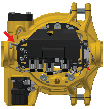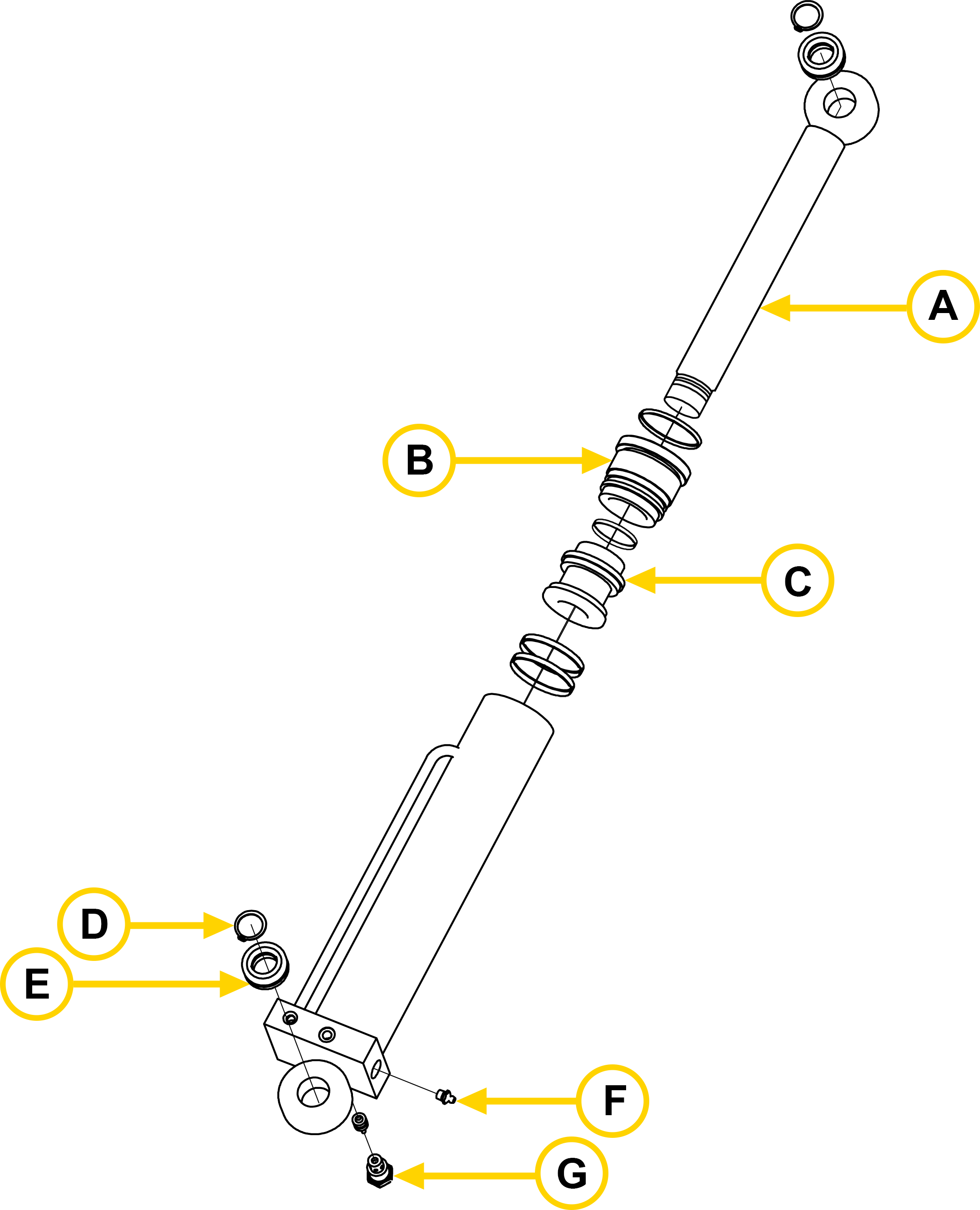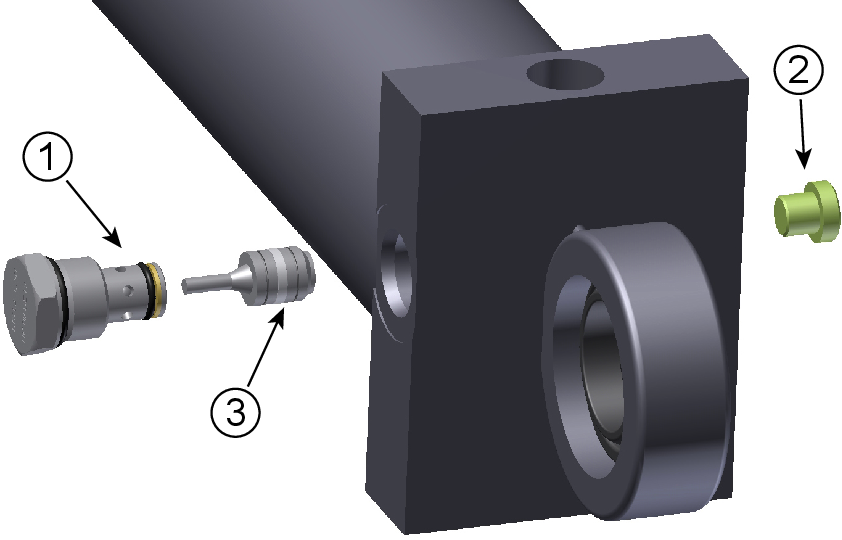 Wees voorzichtig bij het demonteren van de cilinder, omdat het overdrukventiel hydraulische olie onder druk kan bevatten. Hydraulische olie onder druk kan de huid penetreren. Risico op persoonlijk letsel.