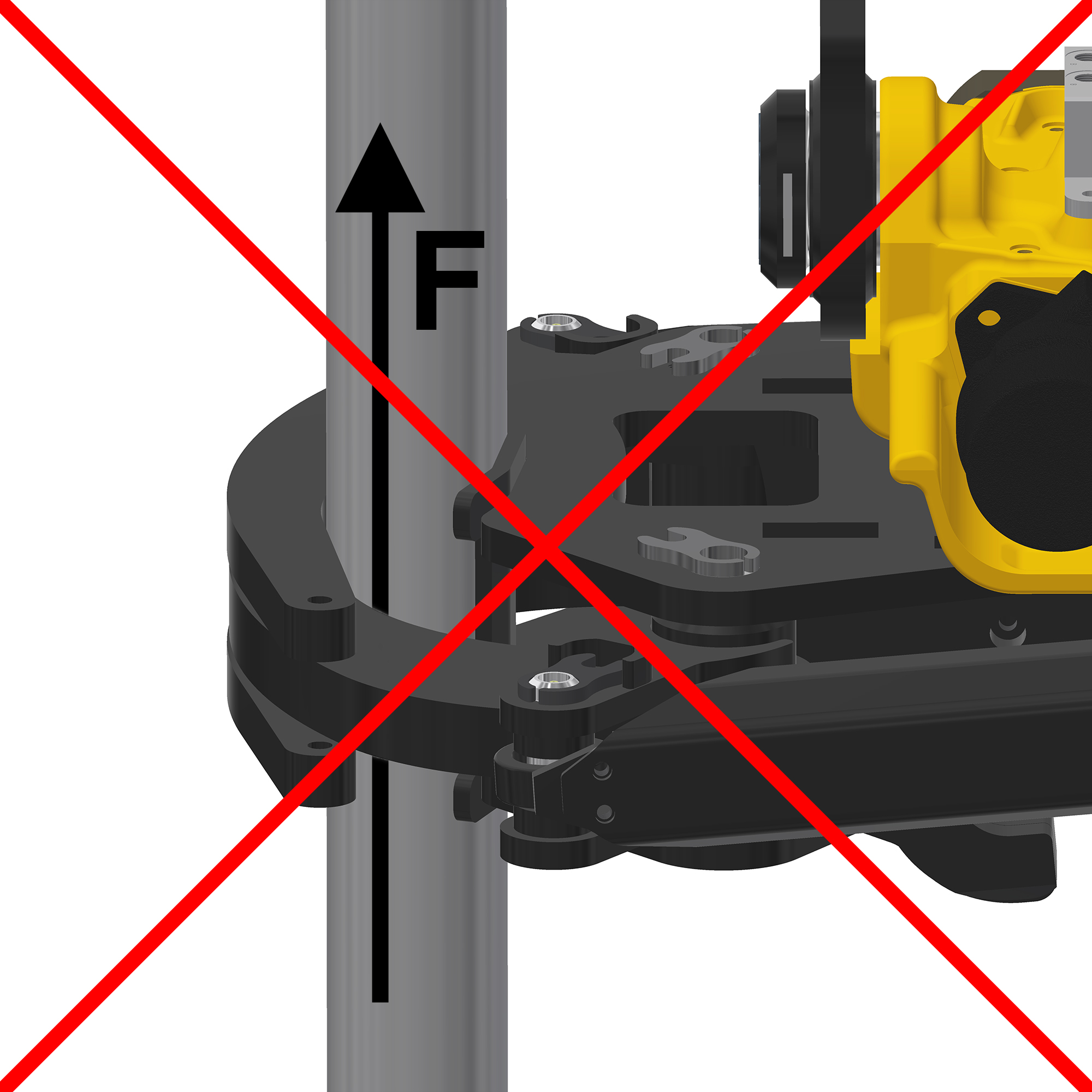 De grenzen voor kantelbelasting mogen niet worden overschreden. Het gewicht van het product en de extra reikwijdte kunnen de stabiliteit nadelig beïnvloeden. Risico op persoonlijk letsel en schade aan eigendom.