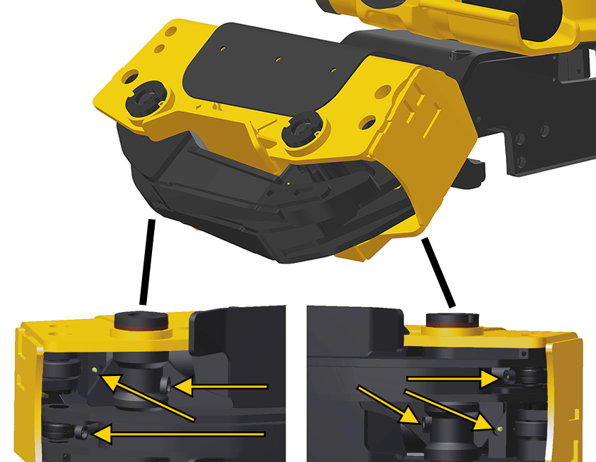 2. Stuur het drukstuk zodanig dat het overeenkomt met de boringen in het bovenstuk van het draaikantelstuk.