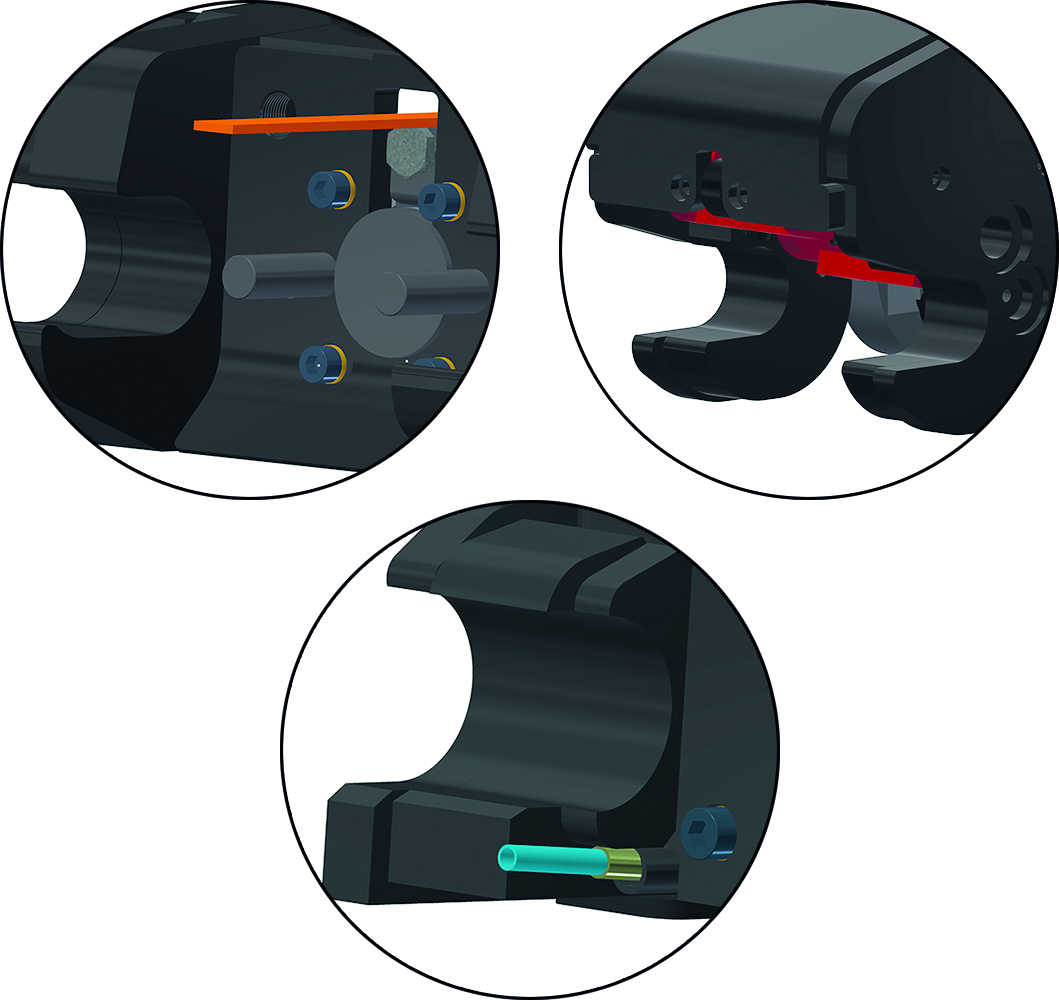 Verbinding tussen opbreekcilinder en machinebevestiging, alternatief direct gemonteerd draaikantelstuk.