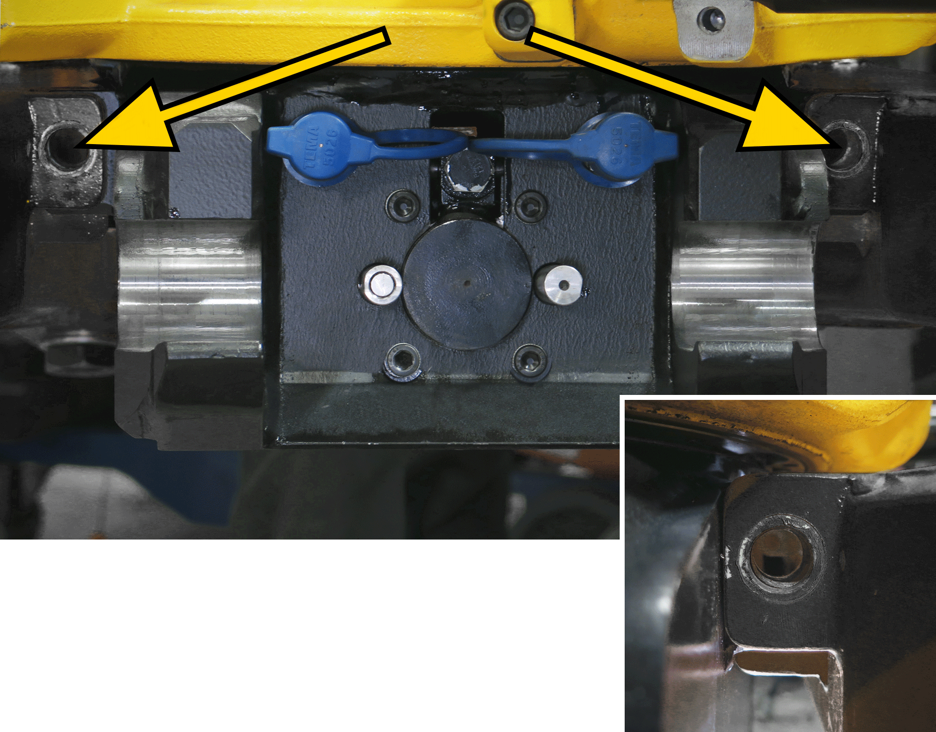 6. Plaats de grijperaanslag terug met een aanhaalmoment van 197 Nm.