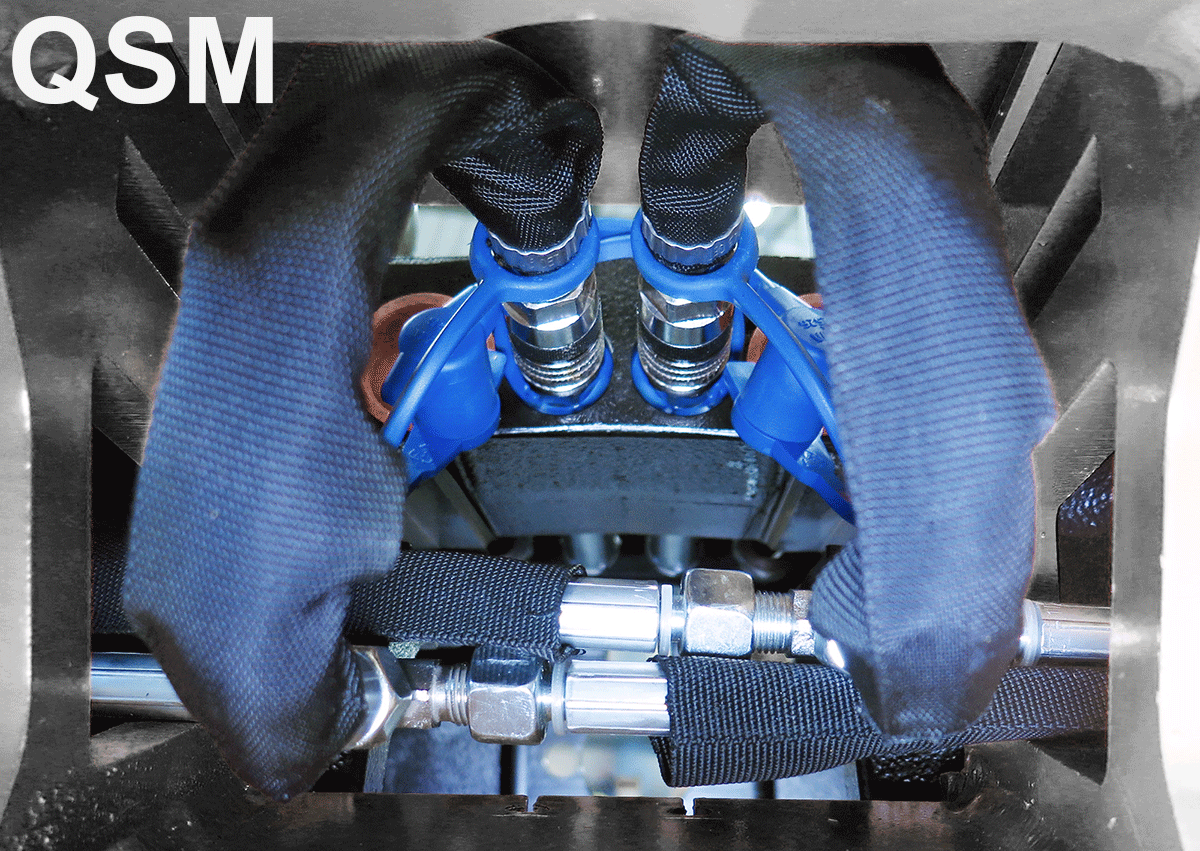 7. Monteer de grijperslangen vanaf de snelwissel naar de aansluitpunten op de grijpercassette.