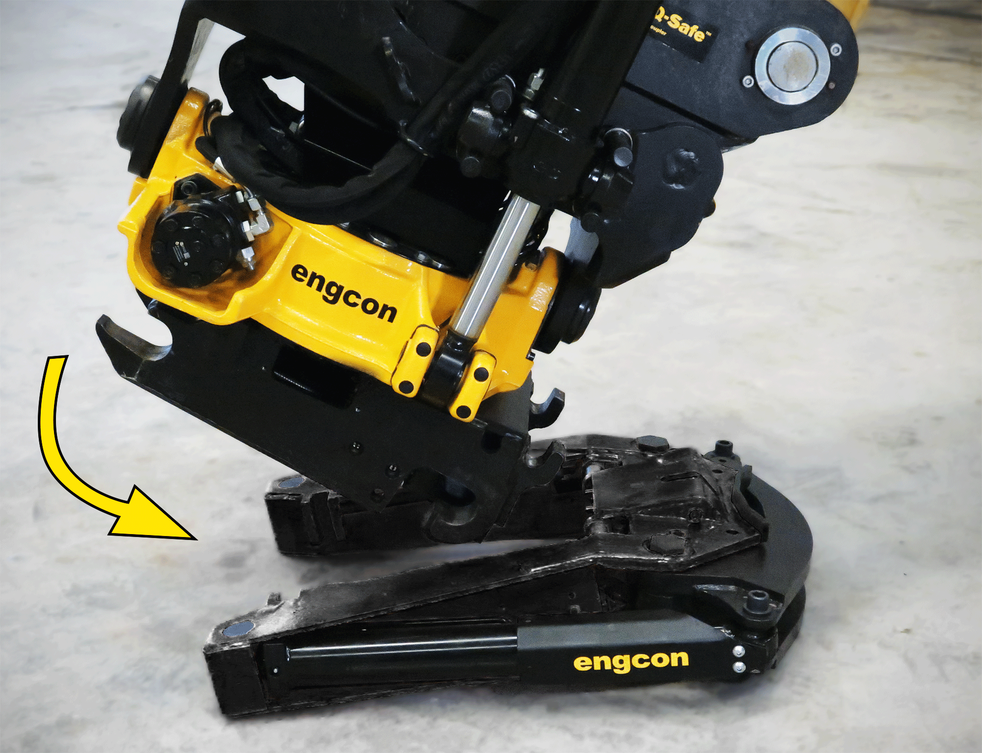 1. Draai de snelwissel zodanig dat de grijper richting cabine wijst.