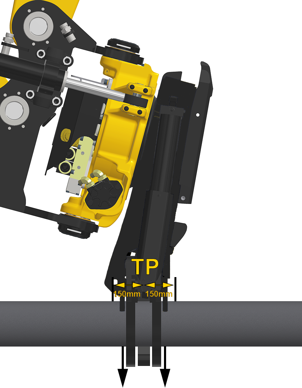 Werktuigbevestiging die direct op de lepelsteel van de graafmachine wordt gemonteerd.