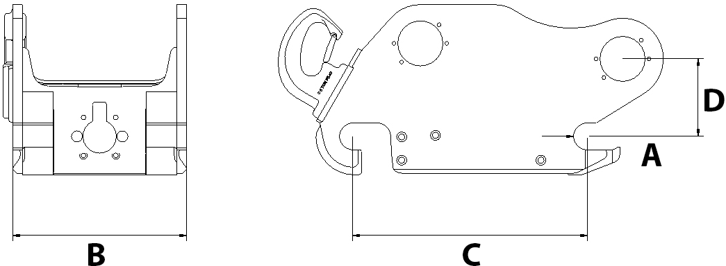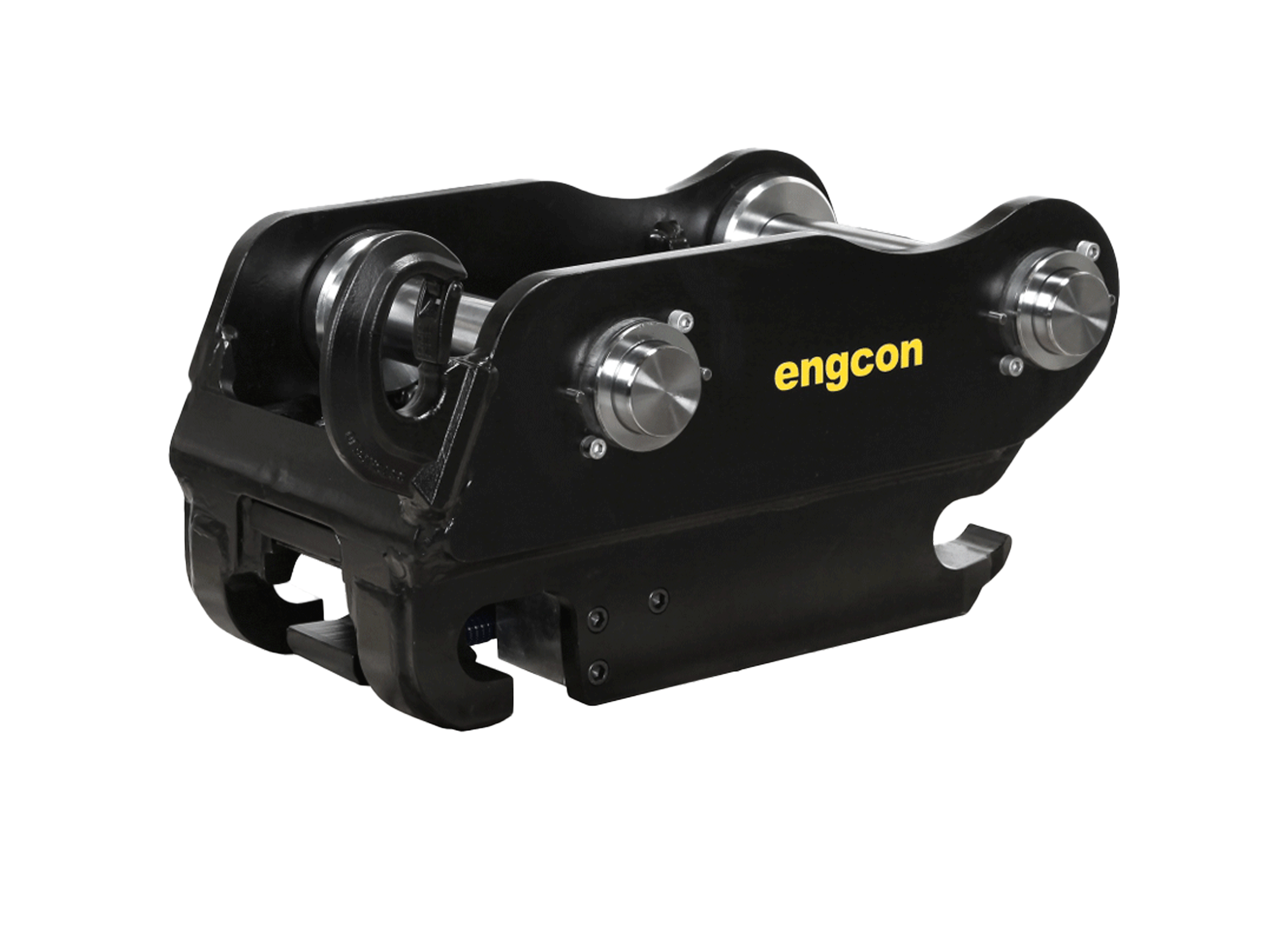 Gestandaardiseerd vergrendelsysteem van engcon waarmee alle soorten machine- en werktuigbevestigingen kunnen worden bediend.