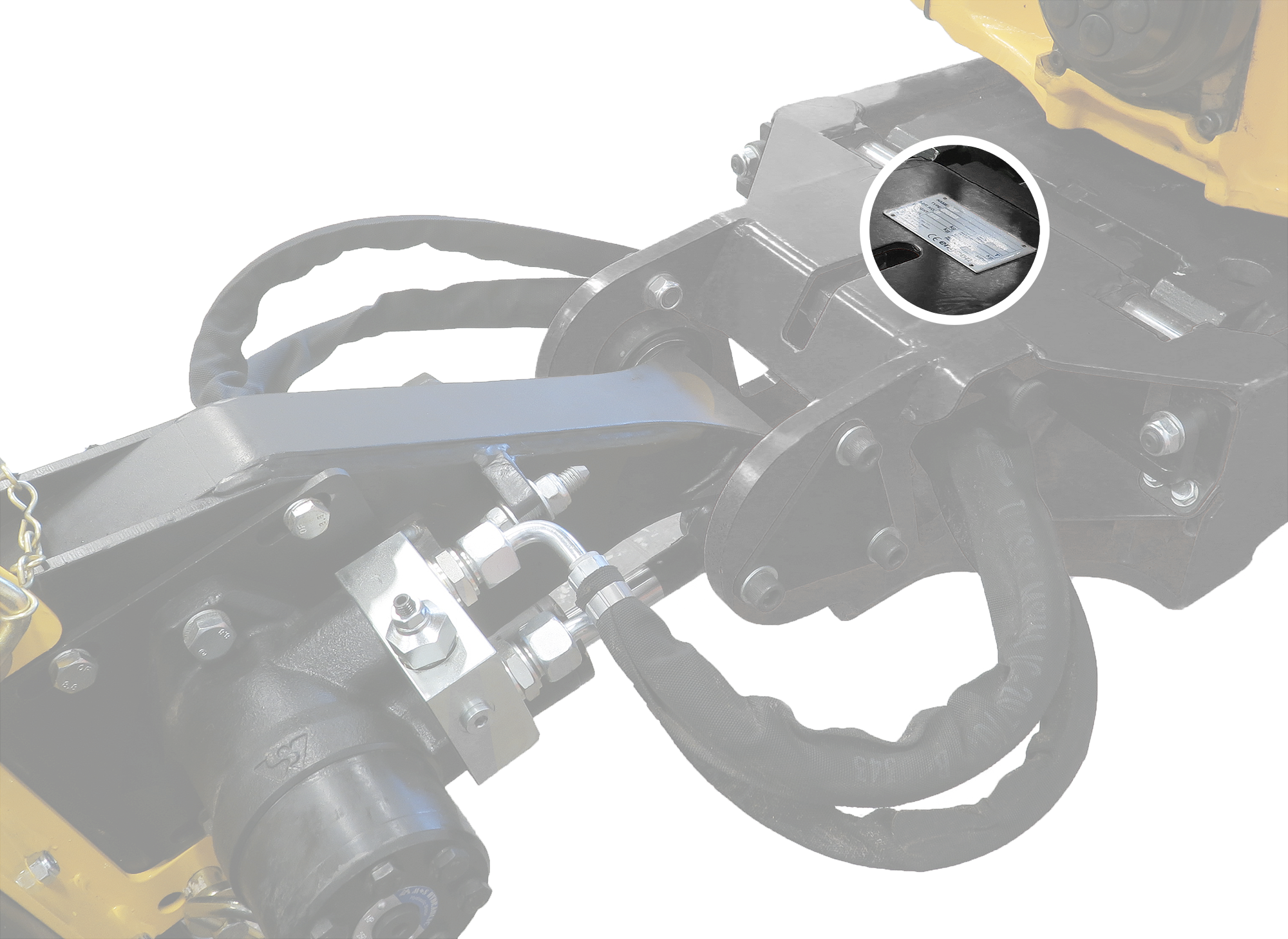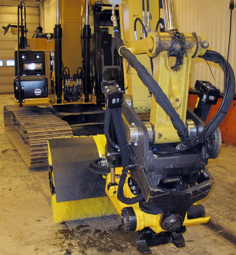 De veegcassette is via een gereedschapsbevestiging aan de basismachine gekoppeld en wordt aangesloten op het hydraulische systeem van de basismachine.