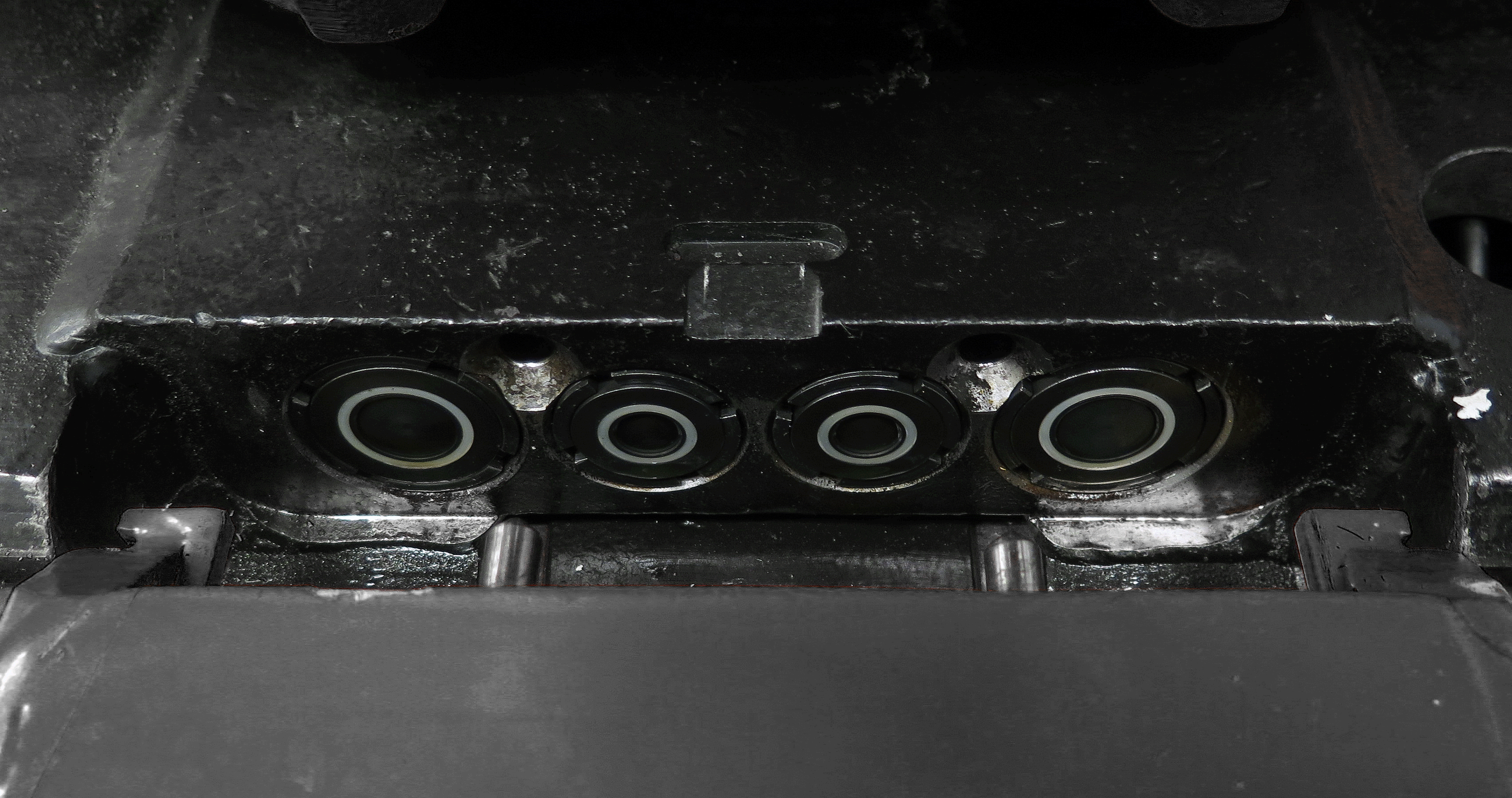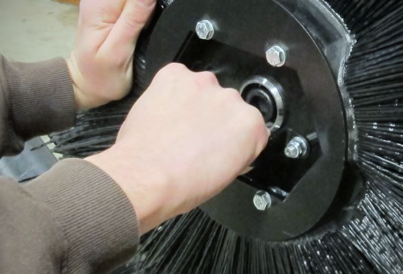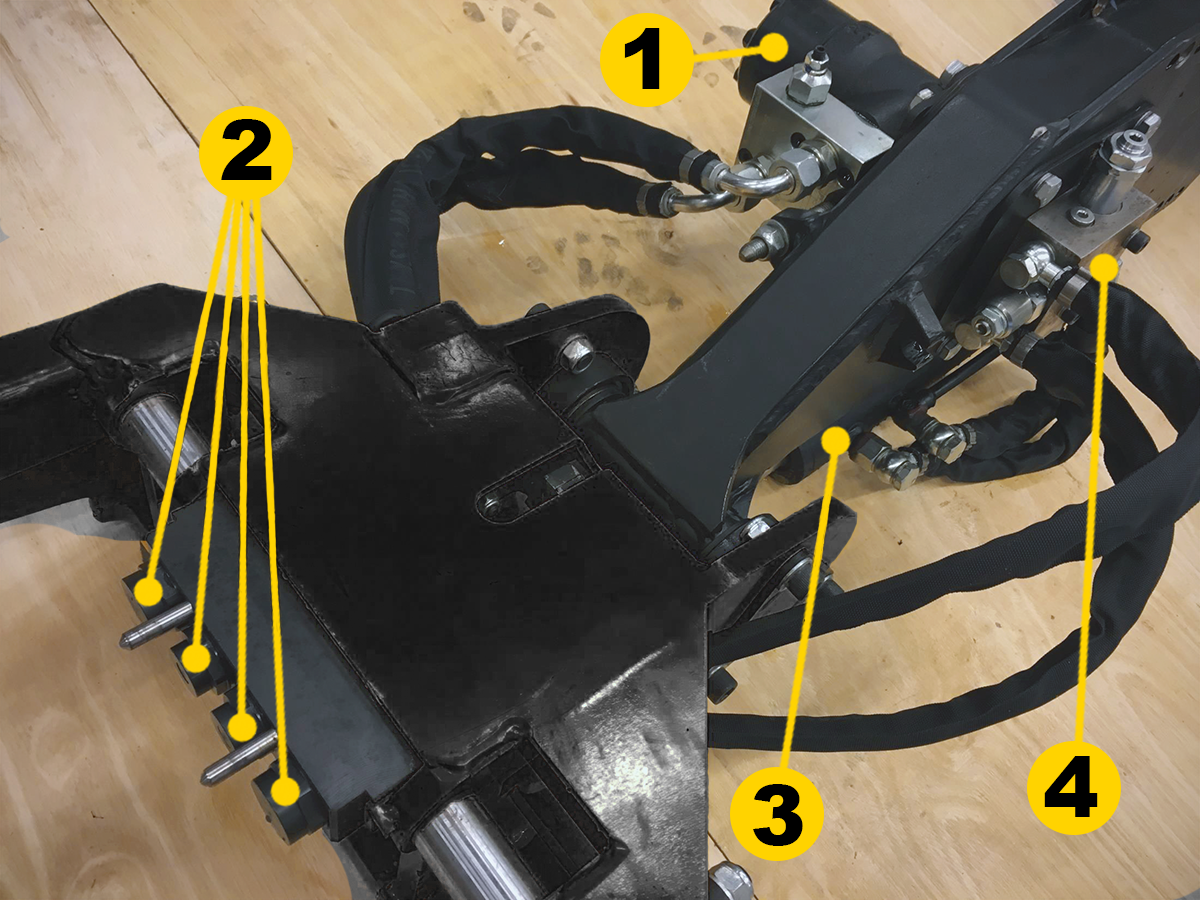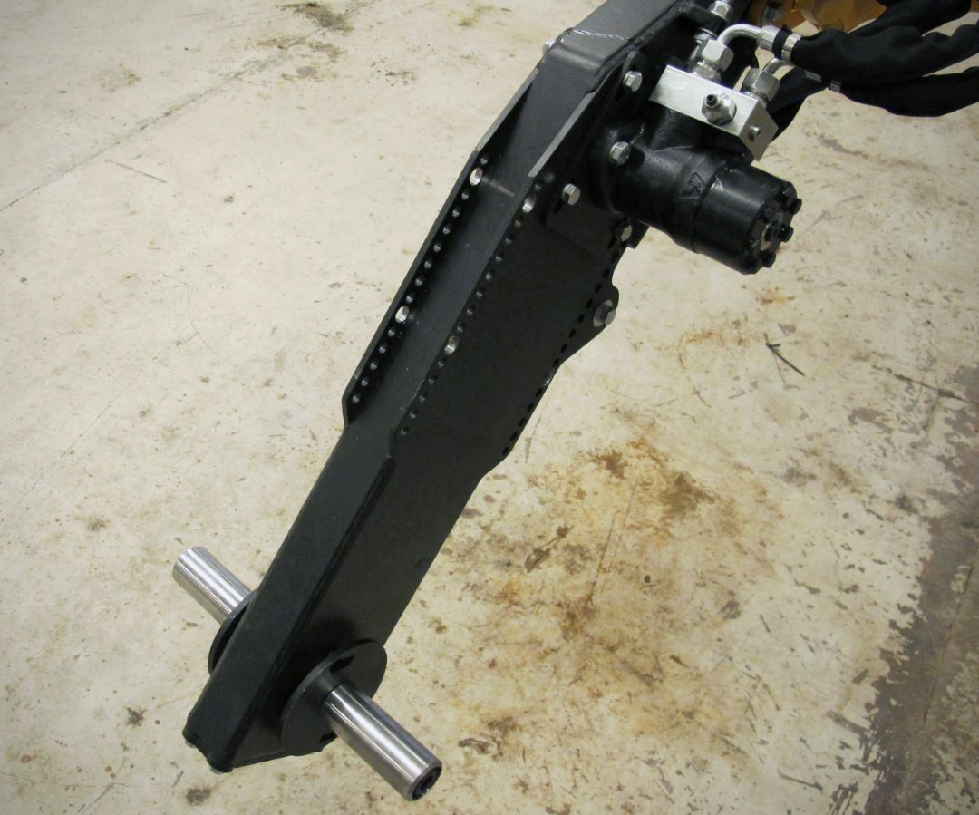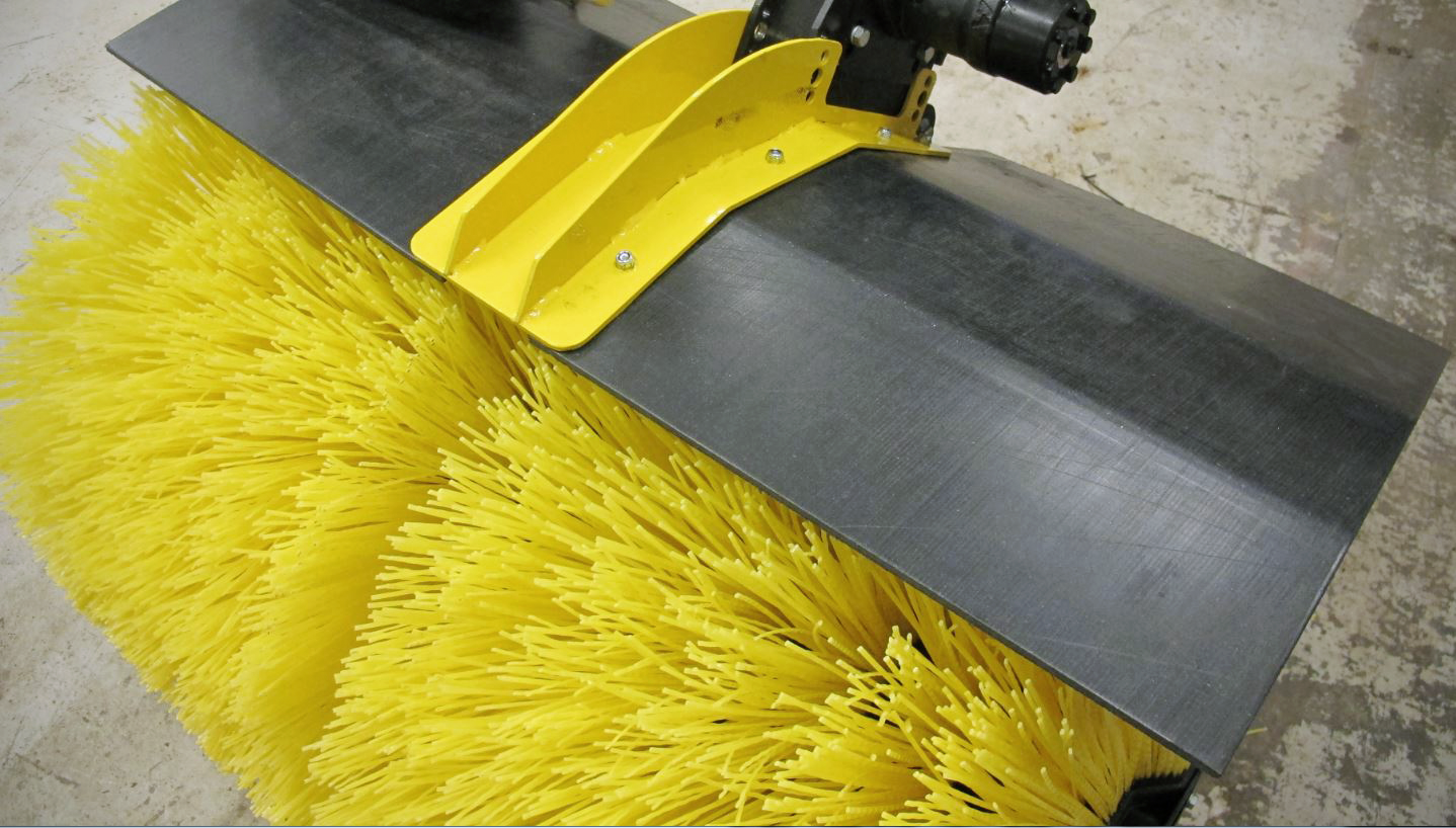 Op de veegarm zit een hydraulische cilinder voor het verhogen en het verlagen van de arm, een hydraulische motor voor de aandrijving van de borstels en een klephuis voor het vasthouden van de lading neerwaarts en overstroom opwaarts.