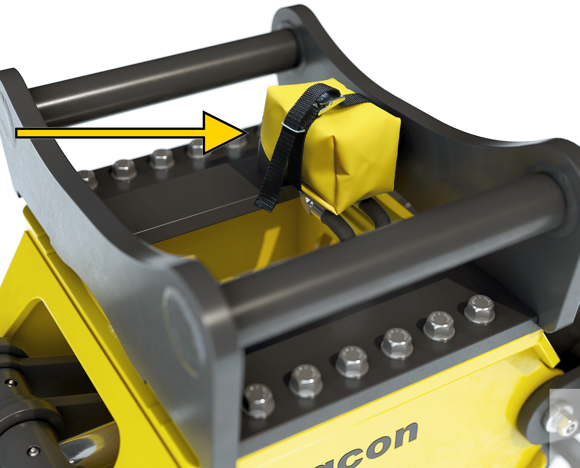 Werktuigbevestiging die direct op de lepelsteel van de graafmachine wordt gemonteerd.