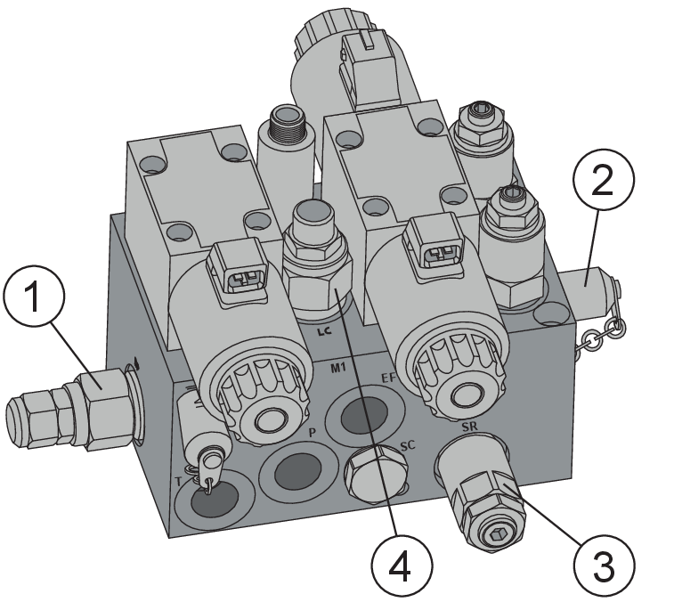 Hydraulsystemet ska vara tryckavlastat innan arbete i systemet påbörjas. Risk för person- och egendomsskada.