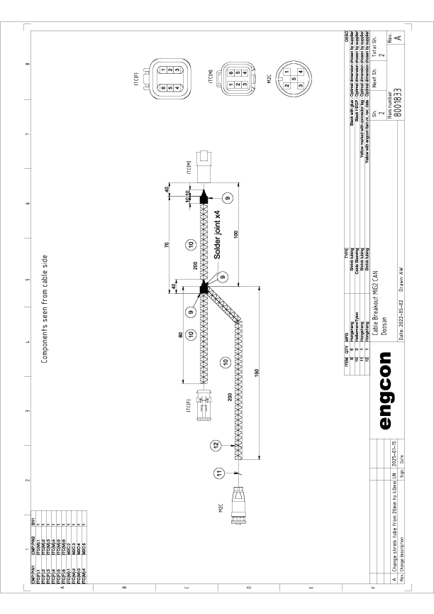 Vid hänvisning till kontakternas kön på ritningarna hänvisar engcon alltid till könet på anslutningsplintarna (stift/hylsor) och inte till husen (kontakt/uttag). Dvs: P = Stift = (M) och på motsvarande sätt S = hylsa = (F)